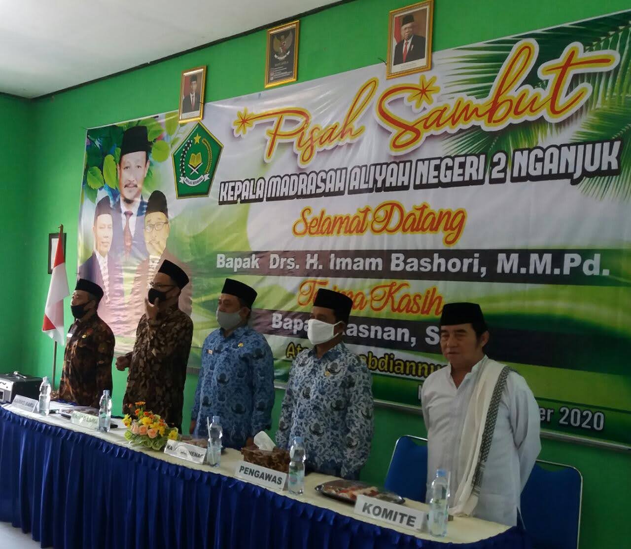 MAN 2 Nganjuk – Rabu, 23 September 2020 dilaksanakan pelantikan jabatan fungsional kepala madrasah di lingkungan Kemenag Kab. Nganjuk. Salah satunya Kepala MAN 2 Nganjuk. Bapak Kasnan yang sebelumnya Plt. Kepala MAN 2 Nganjuk menjadi Kepala MTsN 6 Nganjuk. Kepala MAN 2 Nganjuk sekarang dijabat oleh Bapak Imam Bashori yang sebelumnya menjabat Kepala MA NU Mojosari. Sabtu, 26 September 2020 dilaksanakan rapat koordinasi sekaligus sambutan oleh Bapak Kasnan yang akan pindah tugas ke madrasah yang berlokasi di Desa Ngronggot Kec. Ngronggot.