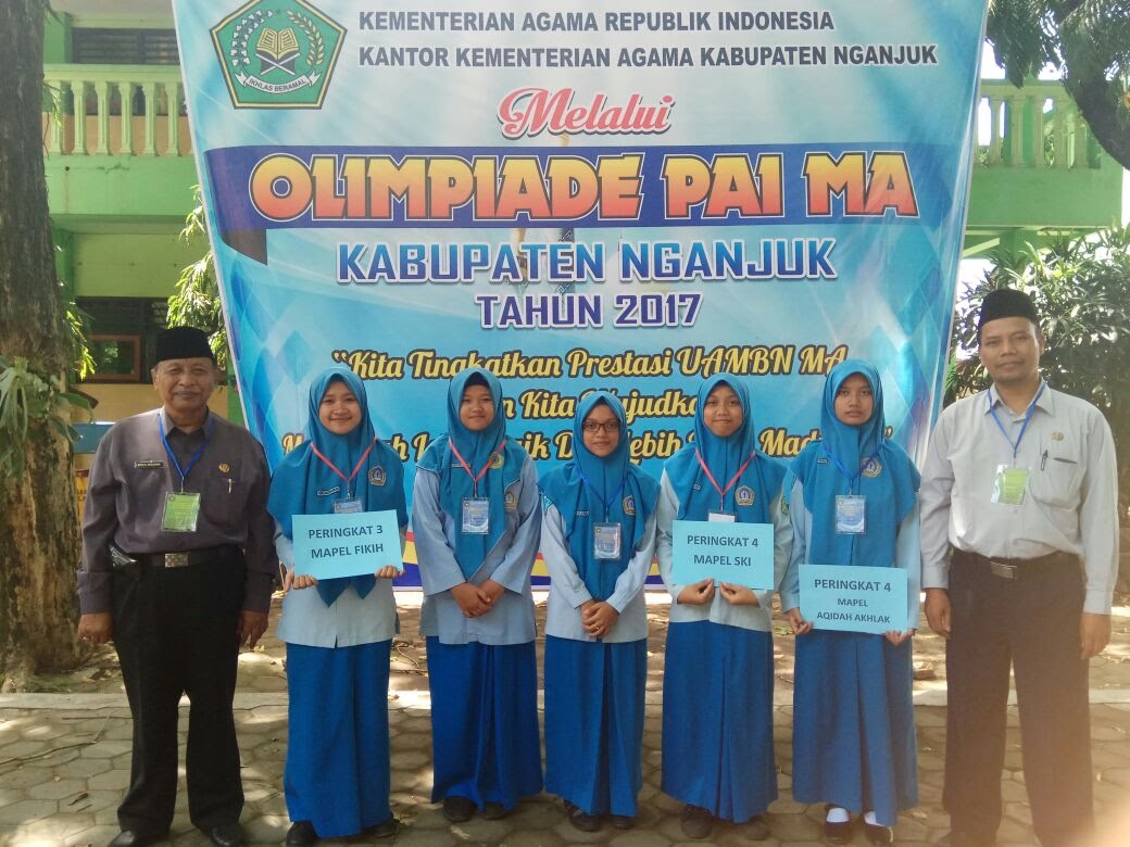 MAN 2 Nganjuk – Delegasi MAN 2 Nganjuk masuk 4 besar olimpiade Pendidikan Agama Islam (PAI) 2017 di MAN 1 Nganjuk (9/12). Mata palajaran (mapel) yang dilombakan meliputi Qur’an Hadits, Fikih, SKI, Bahasa Arab, dan Akidah Akhlak. Dari 5 mata pelajaran tersebut MAN 2 peringkat 3 mapel fikih atas nama Siska Mutmainah, peringkat 4 mapel SKI atas nama Indah L., peringkat 4 mepel akidah akhlak atas nama Maryam Khusnul I. (pu).