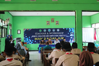 MAN 2 Nganjuk – MAN 2 Nganjuk menyelenggarakan seminar dan workshop tingkat nasional dengan tema Robotic Education & Competition (REACT V 1) di aula setempat (16/3). Kegiatan ini bekerjasama dengan STTKD Yogyakarta dalam bentuk narasumber. Seminar dan workshop ini pertama kali diadakan di MAN 2 Nganjuk.