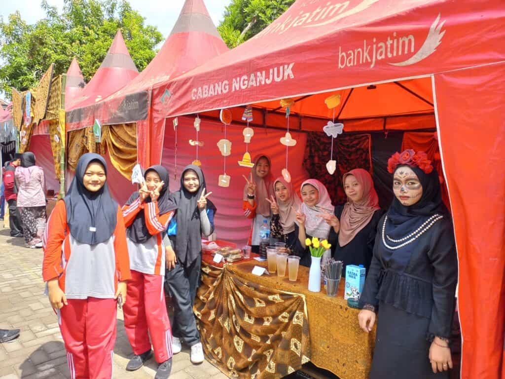 Setelah kegiatan jalan santai, halaman MAN 2 Nganjuk dipenuhi keceriaan dengan bazar ekstrakurikuler. Berbagai stand dari masing-masing kegiatan ekstrakurikuler menampilkan hasil karya, produk, dan kreativitas para siswa, mulai dari kuliner, kerajinan tangan, hingga media digital hasil buatan tim multimedia madrasah.