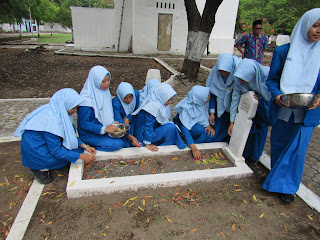 “Kegiatan ini untuk memeringati hari pahlawan, 10 Nopember sekaligus bentuk pembelajaran pada anak-anak agar mengenang dan menghargai jasa para pahlawan,” tuturnya. Kegiatan ziarah ke TMP ini sengaja dilakukan pada 16 Nopember 2017 sebab menyesuaikan dengan kegiatan belajar mengajar siswa/siswi. Disamping itu jika dilaksanakan tepat pada 10 Nopember bersamaan dengan peringatan Hari Pahlawan di tempat yang sama. (PU).