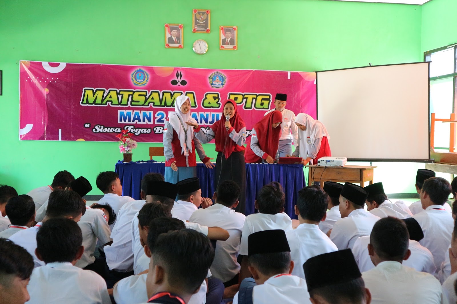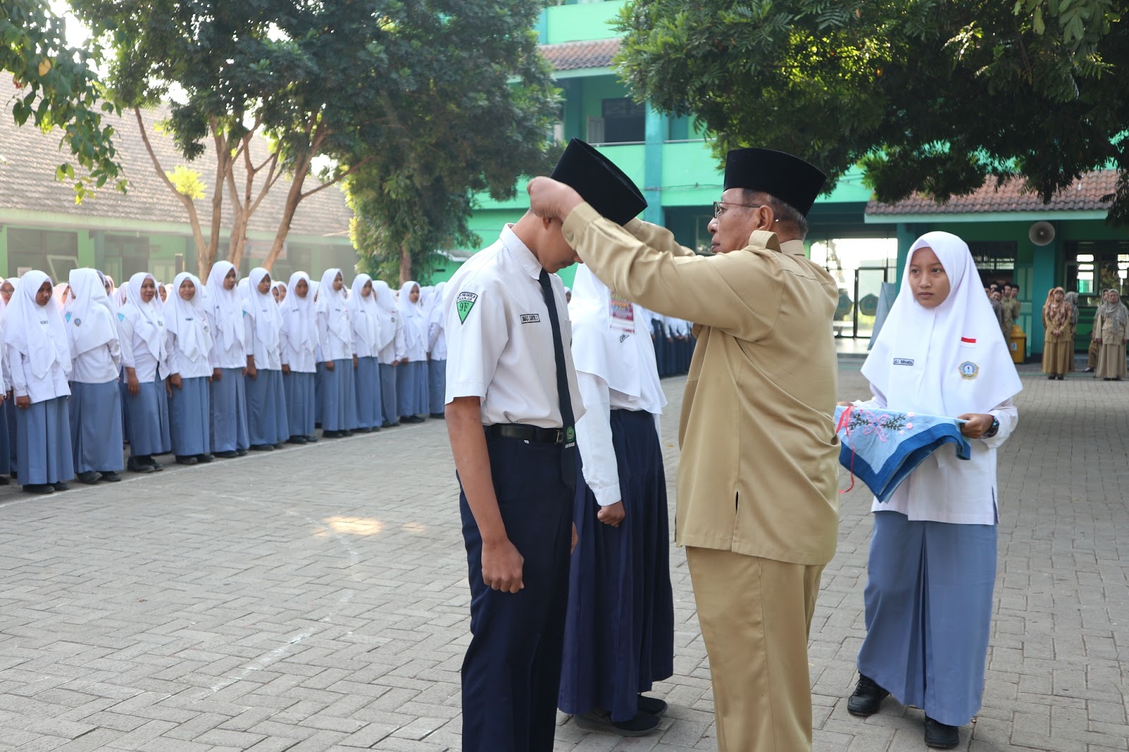 MAN 2 Nganjuk – Hari pertama masuk tahun pelajaran 2019/2020 diawali dengan upacara bendera (15/7). Upacara diikuti oleh bapak ibu guru, staf dan siswa/siswi kelas X yang baru, kelas XI dan kelas XII. Upacara ini sekaligus pembukaan MATSAMA (Masa Taaruf Siswa Madrasah) tahun pelajaran 2019/2020 kelas X. Secara simbolis pembina upacara menyematkan tanda peserta MATSAMA terhadap dua orang peserta.